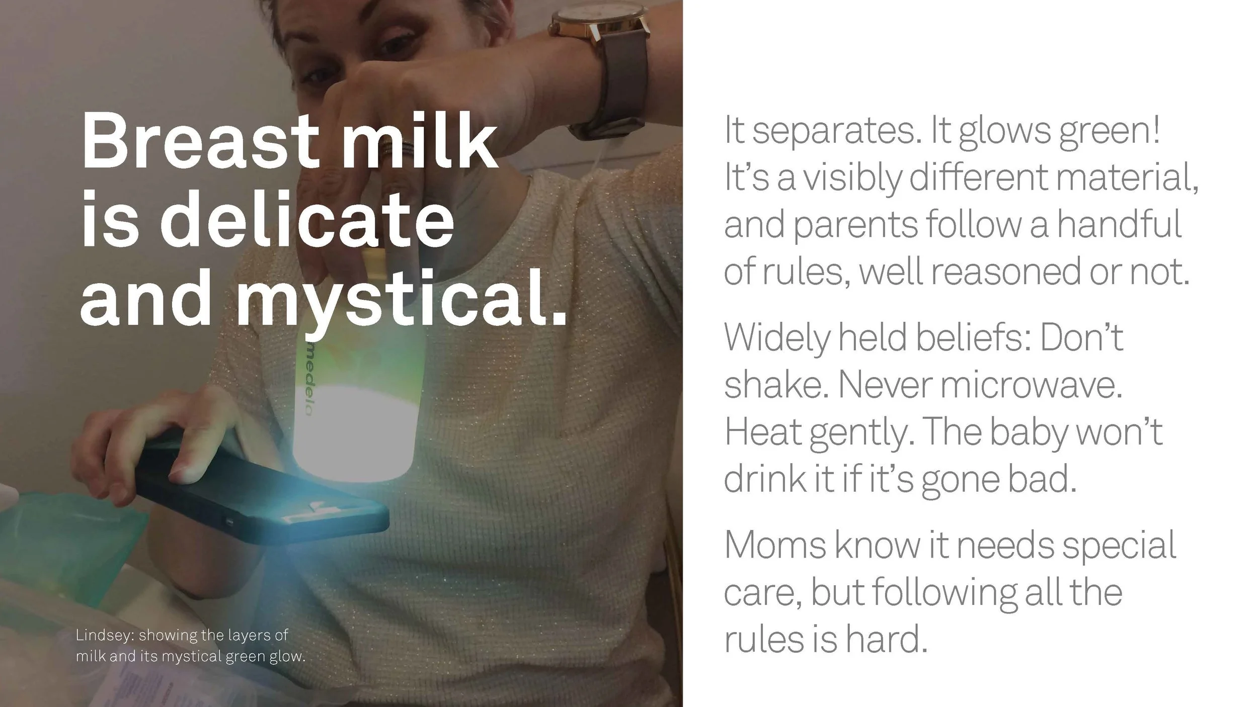 Our biggest learning? Moms weren’t interested. A fancy bottle warmer felt entirely unnecessary. In the big picture of pumping and feeding, warming was the easy bit. But we paid attention to everything they were doing, not just what they said. We saw moms constantly managing temperature — but their focus was on ensuring the milk stays cool. Getting out of the house took a lot of planning ahead, ice packs, and cooler bags.